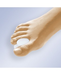 Almohadilla en gel polímero viscoelástico no tóxico, con anillo de sujeción al dedo 2º, recubierta de tela quirúrgica elástica.