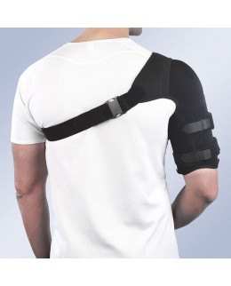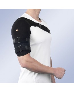 Ortesis de húmero bivalva termoconformada en polietileno de baja densidad, recubierto de una funda textil acolchada.