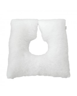 Cojín antiescaras de diseño ergonómico, relleno de fibra hueca, siliconada y conjugada con cintas para atar con facilidad a sillas de ruedas y otros asientos