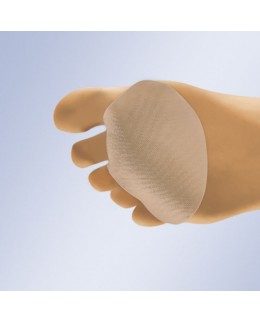 Almohadilla en gel polímero viscoelástico no tóxico, con anillo de sujeción al dedo 2º, recubierta de tela quirúrgica elástica.