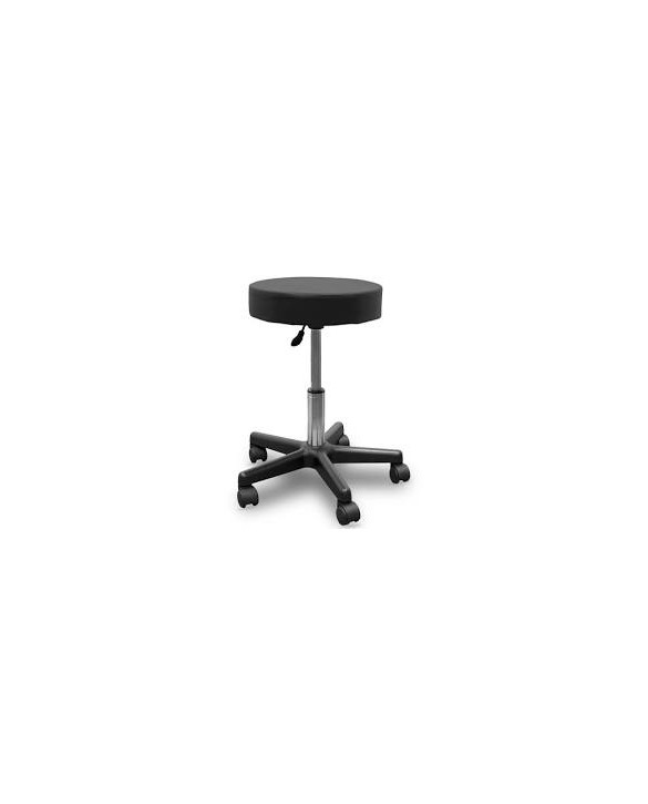 Taburete de asiento redondo (35 cms de diámetro) con base de 5 ruedas y regulable en altura de 42 - 57 cm