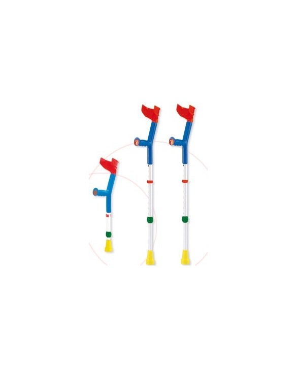 · Diseño de color pensado en los niños.· Puño ergonómico· Tres posiciones de ajuste de altura entre la mano y el antebrazo.· Puño graduable en 10 posiciones diferentes de altura.· Reflectante en el puño.· Marcado CE hasta 100 kg.