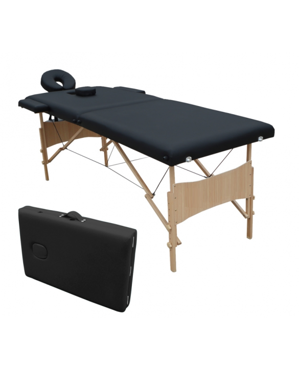 Camilla de madera plegable perfecta para transmitir calidez y relajación al cliente. Este modelo está tapizado en polipiel de alta resistencia, siendo realmente cómoda para el paciente que se tumbe en ella.