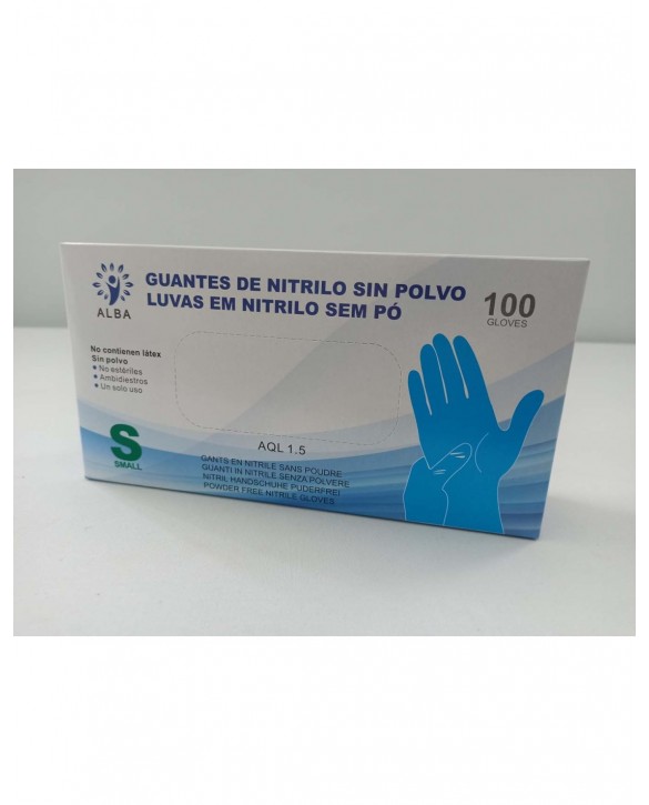 Caja de 100 guantes de nitrilo sin polvo color azul, talla s, m o L
