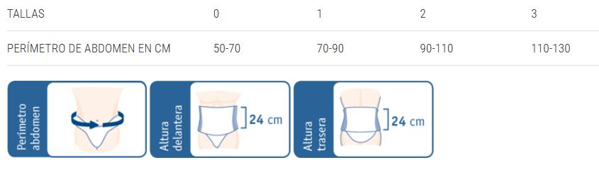 Indicaciones:Contención de pequeñas y medianas eventraciones. Faja de contención post-quirúrgica y post-parto.