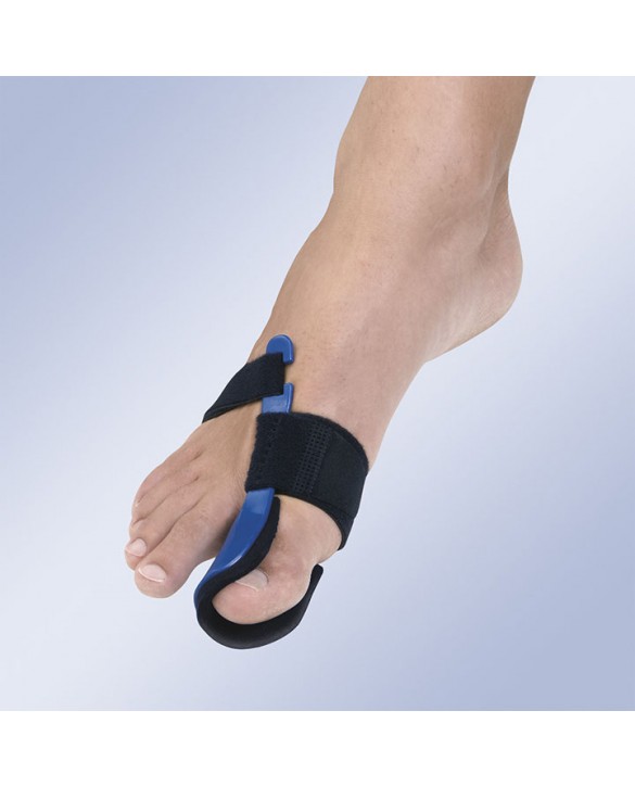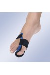 Corrector nocturno Hallux-Valgus fabricado en termoplástico y velour con cierre de microgancho, incorpora una almohadilla amortiguadora en el dedo gordo que junto con la cincha de presión mantiene el primer radio alineado, en posición correcta durante su uso nocturno, disminuyendo el dolor y evitando su posible evolución.