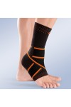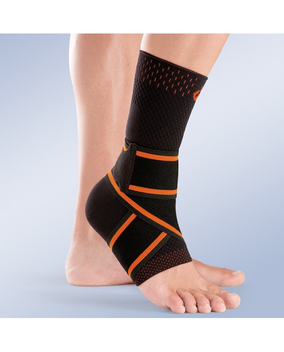 Tobillera tipo calcetín confeccionada en tejido elástico de punto transpirable por medio del tricotaje plano suave y muy resistente, incluye banda elástica cruzada en ocho.