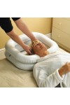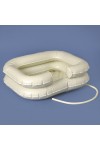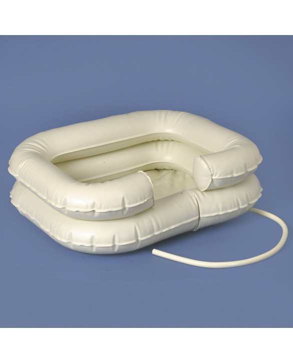 De resistente plástico vinilo, con dos aros hinchables y una abertura para el cuello. Es muy práctico para lavar a una persona encamada. Se puede inflar fácilmente sin necesidad de bomba. Incorpora un tubo de drenaje para evacuar el agua.