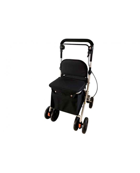Función andador y carro de la compra. 3 posiciones para bloqueo de ruedas. Dispone de freno en as ruedas traseras accionándose mediante una varilla-palanca bajo el reposamanos.