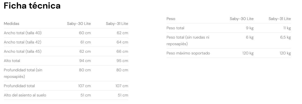 El modelo Saby-30 Lite pesa tan solo 9 kg y la Saby-31 Lite 11 kg.
