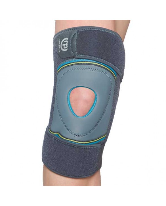 La Rodillera Prim Neoprair está indicada en casos de condromalacia rotuliana, dolor articular, bursitis, tendinitis, artritis y artrosis. Rodete rotuliano que centra y estabiliza la rótula evitando movimientos indeseados. 4 ballenas laterales en espiral (2 a cada lado): aportan estabilización medio-lateral, permitiendo el movimiento en flexo-extensión.