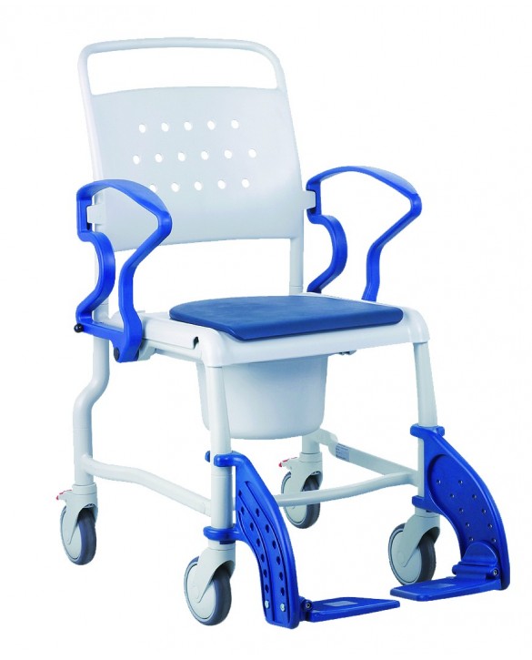 Con orinal para inodoro y asiento confort acolchado.