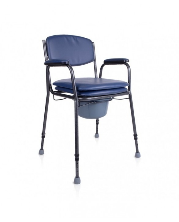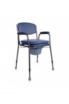 Silla inodoro de acero. Graduable en altura, plegable y con tapa. Color azul. Altura graduable de 51/61 cm. Peso soportable 100 kg.
